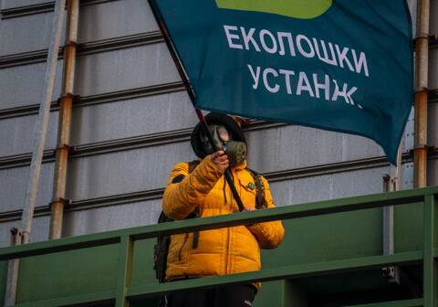 Lors d'une manifestation à Belgrade, le 4 décembre 2021, contre le projet de mines de lithium de Rio Tinto AFP/Archives / OLIVER BUNIC.